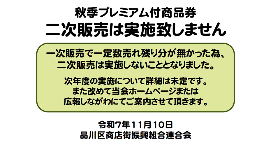 品川区商店街連合会(10:00~17:00 土日祝を除く)